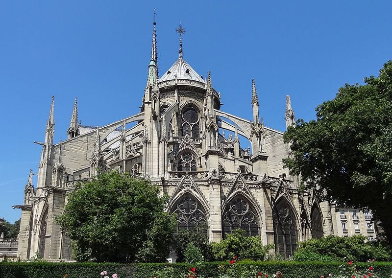 The flying buttresses on the cathedral are some of the earliest ever built on a structure, dating to the 12th century. They were built to support the thin walls that were built to accommodate the large windows that allow light to spill into the cathedral. Exposed flying buttresses became an important aspect of Gothic design.
