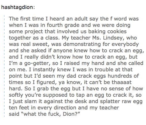 1. I just keep imagining this person telling this story on a date in response to the question, “do you cook?”