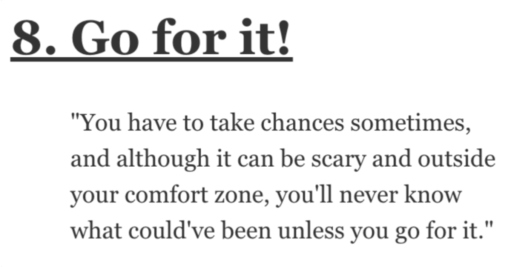 “You have to take chances sometimes, and although it can be scary and outside your comfort zone, you’ll never know what could’ve been unless you go for it.”