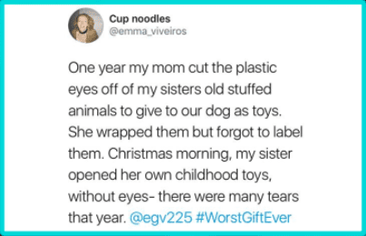 I don’t know about you, but I’d be hard pressed to think of anything worse than these 14 gifts, though. And thanks to Jimmy Fallon’s viewers we’ve got some pretty damn hilarious examples!