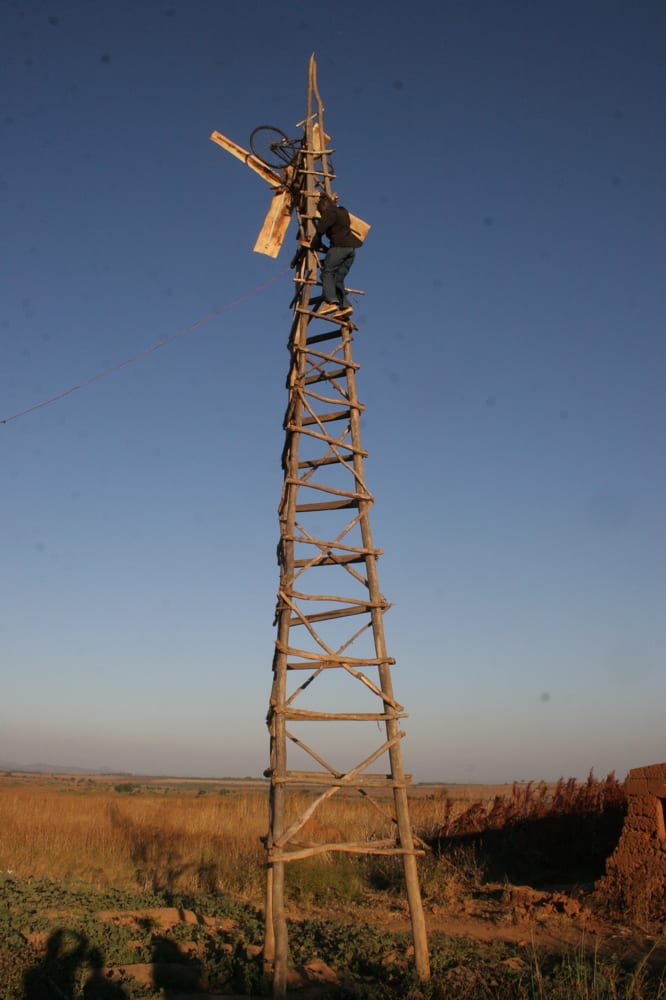 But several years later, he has five windmills up to 37 feet tall. They generate electricity and pump water in his hometown of Masitala.
