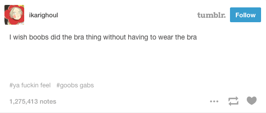 Boobs are one of those things that people envy if they don’t have big ones, and loathe if they do. It’s like long hair vs. short hair, tall people vs. short people, etc. You always want what you can’t have, the grass is always greener, and all of that.