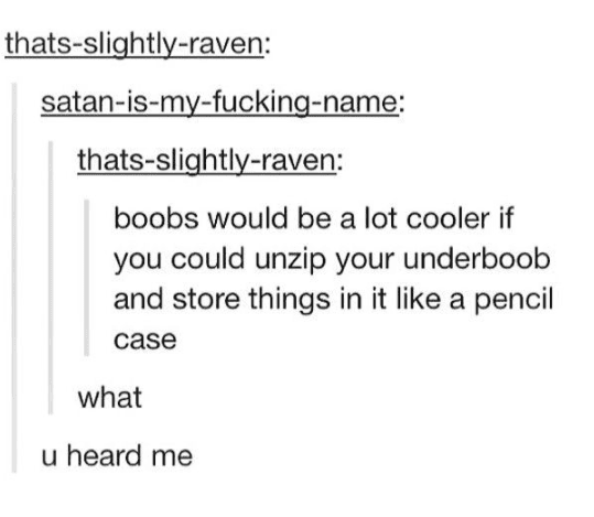 #14. There are a few things that would make boobs cooler for their owners.