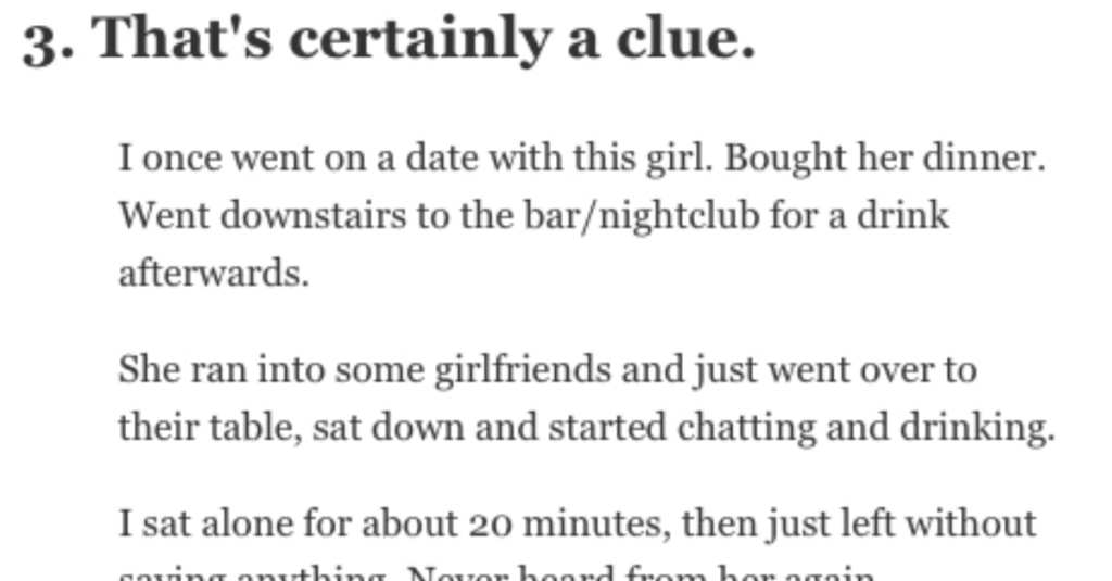 I sat alone for about 20 minutes, then just left without saying anything. Never heard from her again.