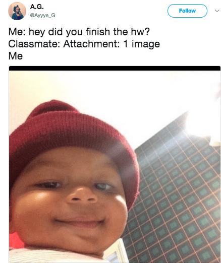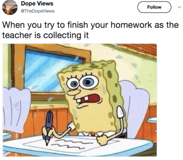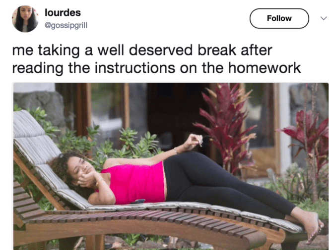 If you’re still a student, you’ll relate to these tweets. If your schoolin’ days are over…you’ll still relate to these tweets because the fear and dread of homework never disappears.