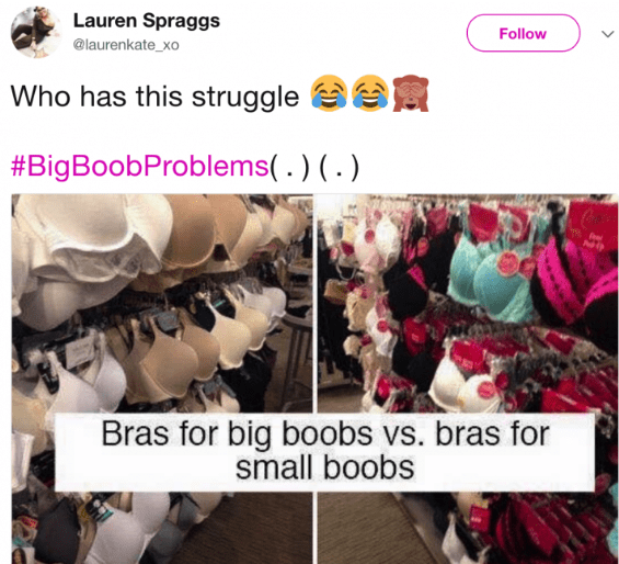 Listen, don’t get me wrong. Big boobies are a gift to this world, maybe one of the nicest things to exist. However having them isn’t always a walk in the park. There are certain problems every single girl with big ole tiddies has experienced and (breast reduction aside) will forever experience.