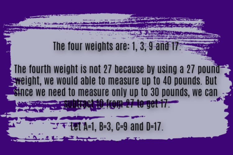 #2. What four weights can be used to balance from 1 to 30 pounds?