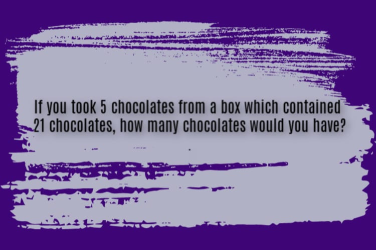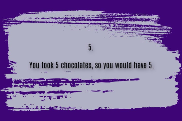 #3. If you took 5 chocolates from a box which contained 21 chocolates, how many chocolates would you have?