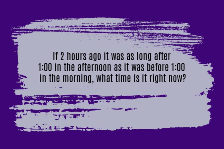 #1. If 2 hours ago it was as long after 1:00 in the afternoon as it was before 1:00 in the morning, what time is it right now?