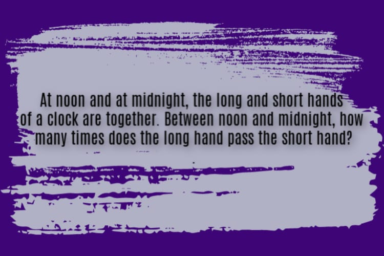 #4. At noon and at midnight, the long and short hands of a clock are together. Between noon and midnight, how many times does the long hand pass the short hand?