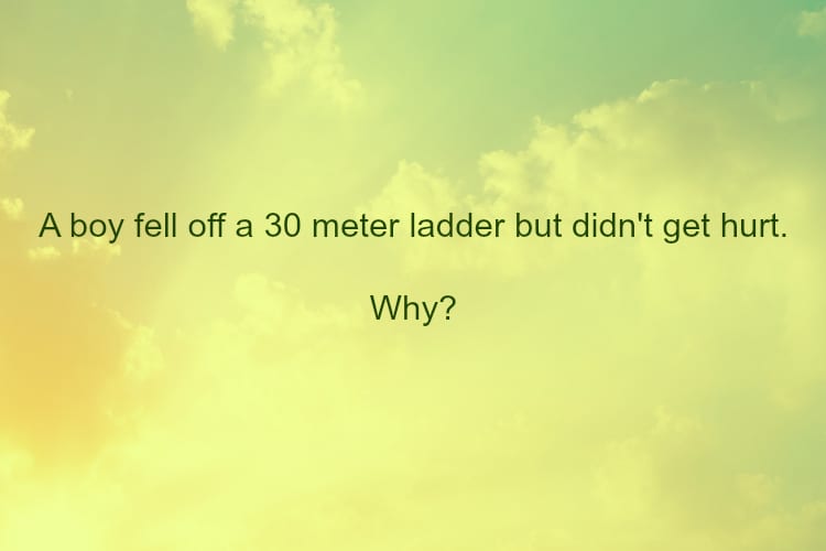 #2. Why didn’t the boy get hurt falling off a 30 foot ladder?