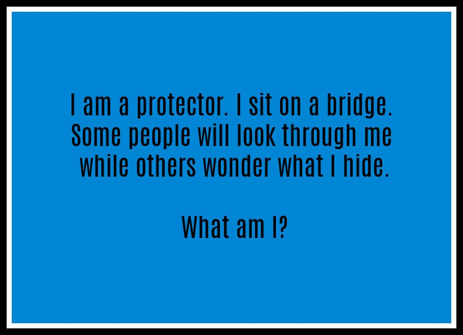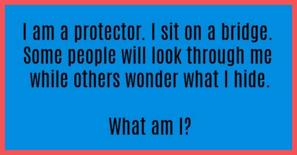 5. I am a protector. I sit on a bridge. Some people will look through me while others wonder what I hide. What am I?