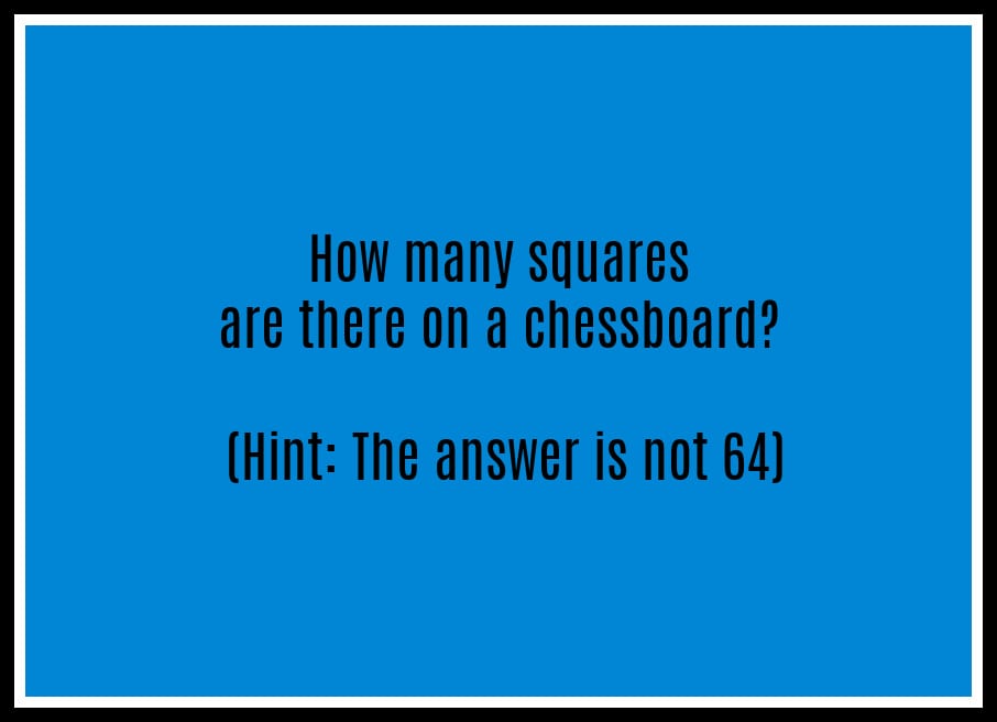 2. How many squares are there on a chessboard? (Hint: The answer is not 64)