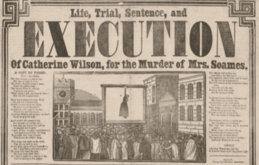 Catherine Wilson was charged with the murder of one of her patients, Mrs. Soames, and executed on October 20, 1862. She remains the last woman to be publicly hanged in London.