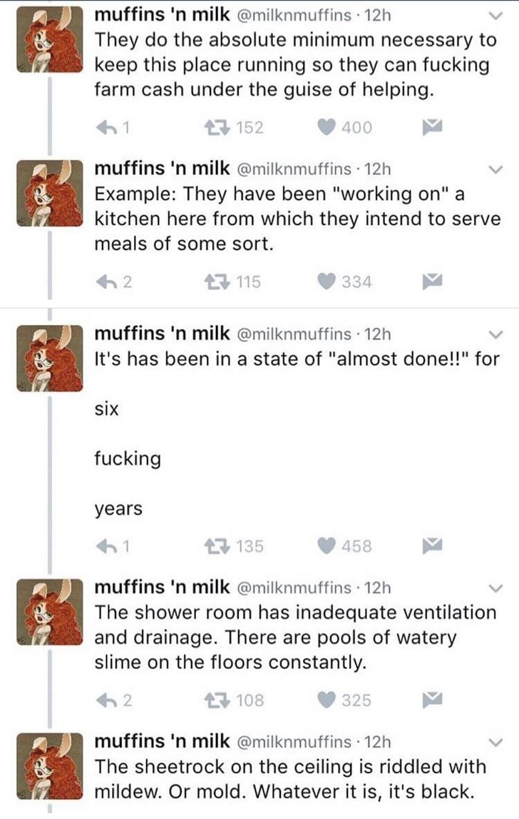 The shelters aren’t clean or well-kept, leading to more suspicions that donations aren’t funneled to the people who really need them.