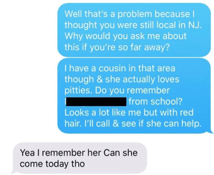 To make the situation even worse, the woman realized that they didn’t even live IN THE SAME STATE. But she does have a cousin who lives nearby, so she tried to make it work.