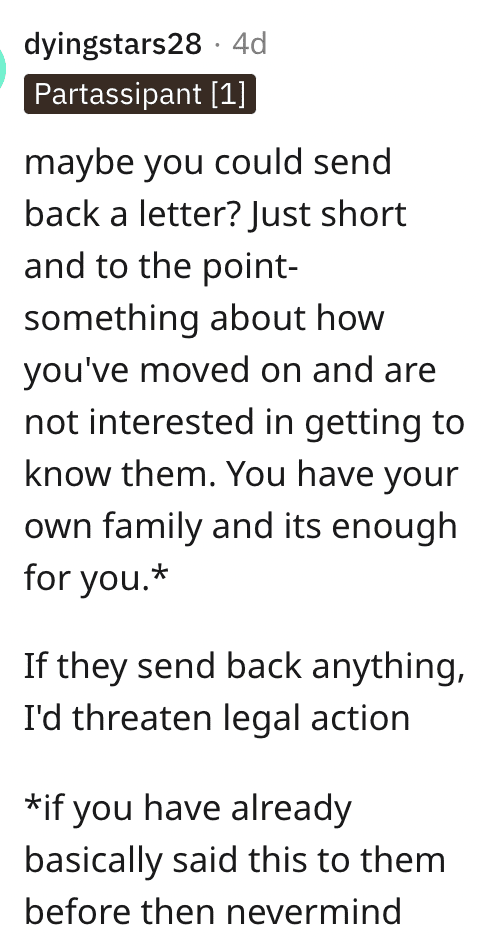 Up until recently these were all messages on social media but they recently sent a letter to my home address which means they know where I live and that really creeps me out.