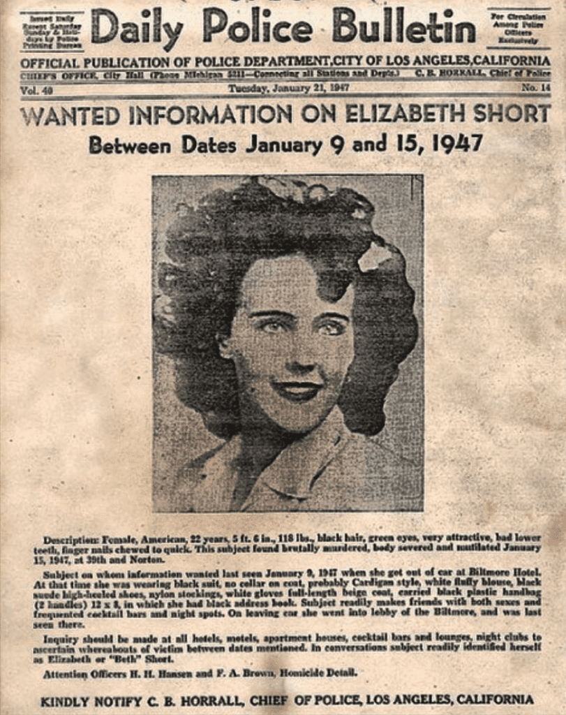 On the morning of January 15, 1947, a woman walking with her daughter in a still-developing neighborhood in Los Angeles noticed something odd. She thought she saw a mannequin cut in two laying in a vacant lot among the scattered houses that had been built in the Leimert Park neighborhood. As the woman got closer to inspect what she thought was a mannequin, she was horrified to find that it was the body of a young woman. The corpse had been cut in two at the waist and drained of all its blood. The body had also been thoroughly washed before it was dumped in the quiet neighborhood.