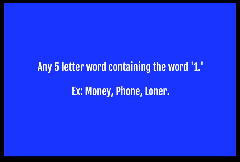 #1. What 5 letter word only contains 2 letters when 1 is removed?