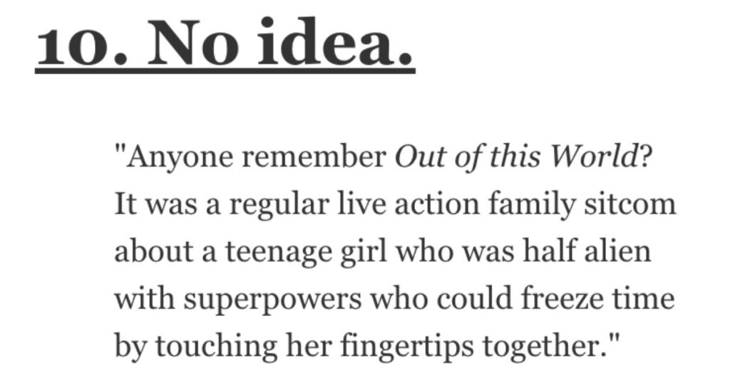 I thought I was the only person who remembered the TV show from the 1980s called Small Wonder but I brought it up recently and a few people I was out with totally remembered that weird show…so I got nothin’… What TV show from your childhood do you remember that no one else seems to? AskReddit users...