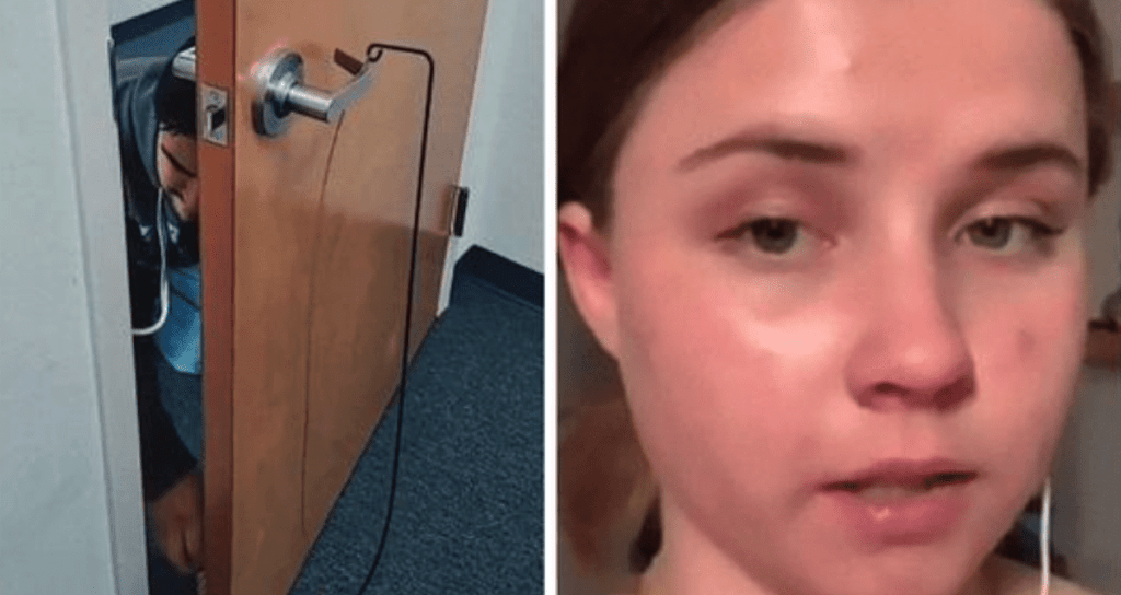As you can see in this video she posted to TikTok, where she recreated what she saw, that wasn’t the truth at all – there was someone using a long wire with a hook on the end to try to open her door from the outside.