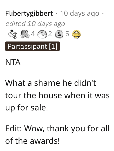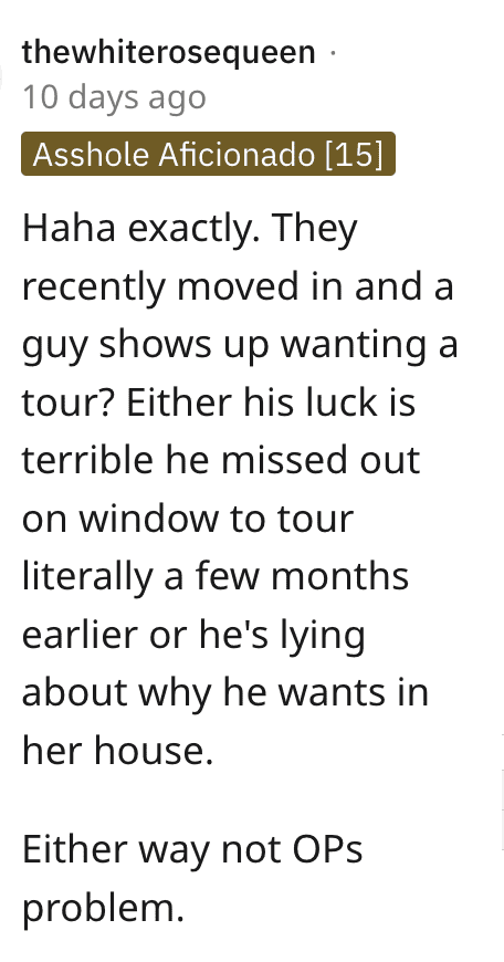 This person pointed out the obvious, which is that he could have toured the home any time while it was up for sale.