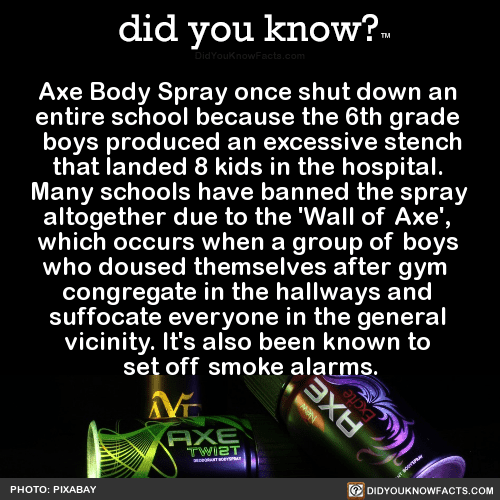Axe Body Spray once shut down an entire school because the 6th grade boys produced an excessive stench that landed 8 kids in the hospital.