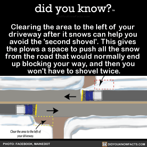 Clearing the area to the left of your driveway after it snows can help you avoid the ‘second shovel’. This gives the plows a space to push all the snow from the road that would normally end up blocking your way, and then you won’t have to shovel twice.