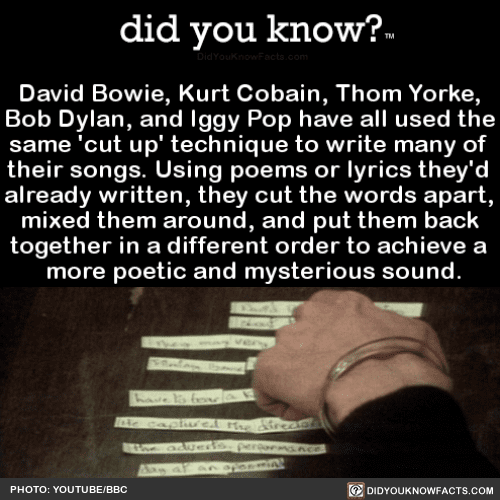 David Bowie, Kurt Cobain, Thom Yorke, Bob Dylan, and Iggy Pop have all used the same ‘cut up’ technique to write many of their songs.
