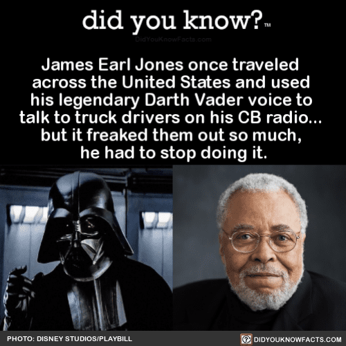 James Earl Jones once traveled across the United States and used his legendary Darth Vader voice to talk to truck drivers on his CB radio… but it freaked them out so much, he had to stop doing it.