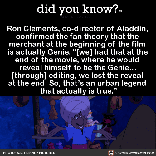 Ron Clements, co-director of Aladdin, confirmed the fan theory that the merchant at the beginning of the film is actually Genie.