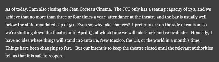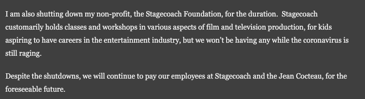 He’s shutting things down out of an abundance of caution, even though his businesses aren’t huge.