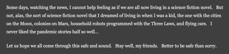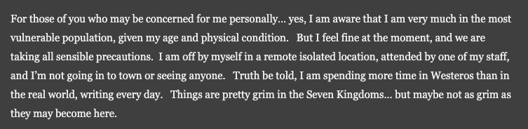 On March 17th, George R.R. Martin posted an update on his blog, detailing how his many enterprises are handling the coronavirus outbreak.