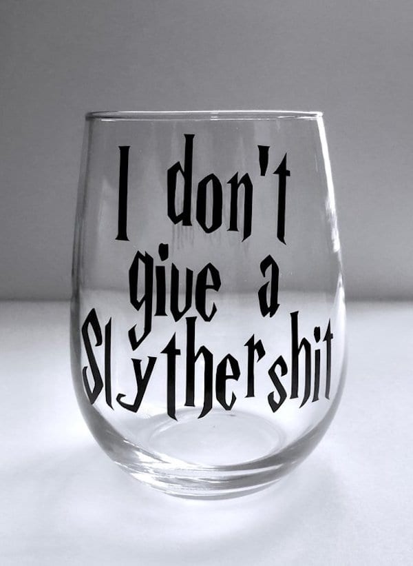 But especially give me items that will hold booze, and that goes double for ones that get swear words into the mix. I mean, I guess some people would argue that these have no place because Harry Potter is a children’s series, but let’s get real – the generation that was weaned on Harry Potter are all grown up, many of us with kids of our own, and we need these glasses like we need air and earlier bedtimes.
