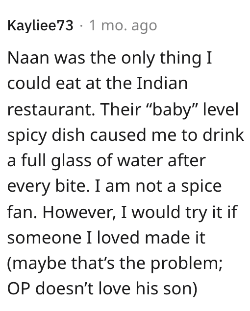 Others who also have spice aversions confirmed that they would try food made by a loved one, so maybe that’s the real problem.