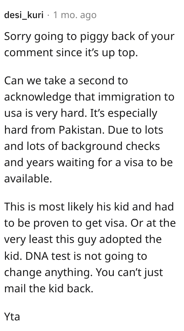 Recently he relocated to the States full time and attends an expensive private school. OP takes offense at this because he wants his son to get a DNA test (he refuses).