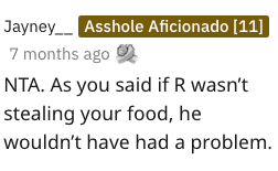 I told some buddies what happened and a few think I was an asshole for that. I feel like I’m not in the wrong here. He was taking my food and not even owning up to it and I wanted to prove it, does that make me TA?
