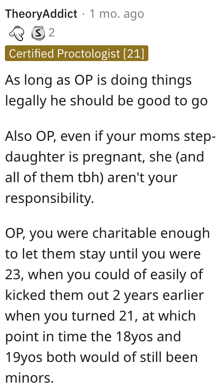 Another Reddit user made a good point…they can’t afford to get their own place yet?