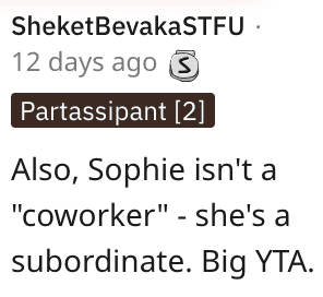 I (27M) am a general manager at a fast food restaurant -not gonna say which bc I dont want to get in trouble- with my assistant manager “Sophie” (23F).