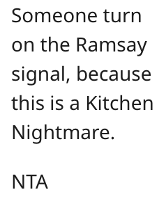 One person said he’s NTA and this is a KITCHEN NIGHTMARE.