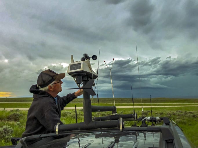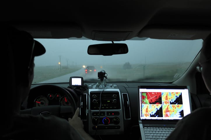 Chasers use all sorts of equipment, from doppler radars and laptops to cameras and other things they need to analyze the data they collect. They tend to put the equipment in harm’s way while they keep themselves safe in the truck or other vehicle – and they almost always bring backups.