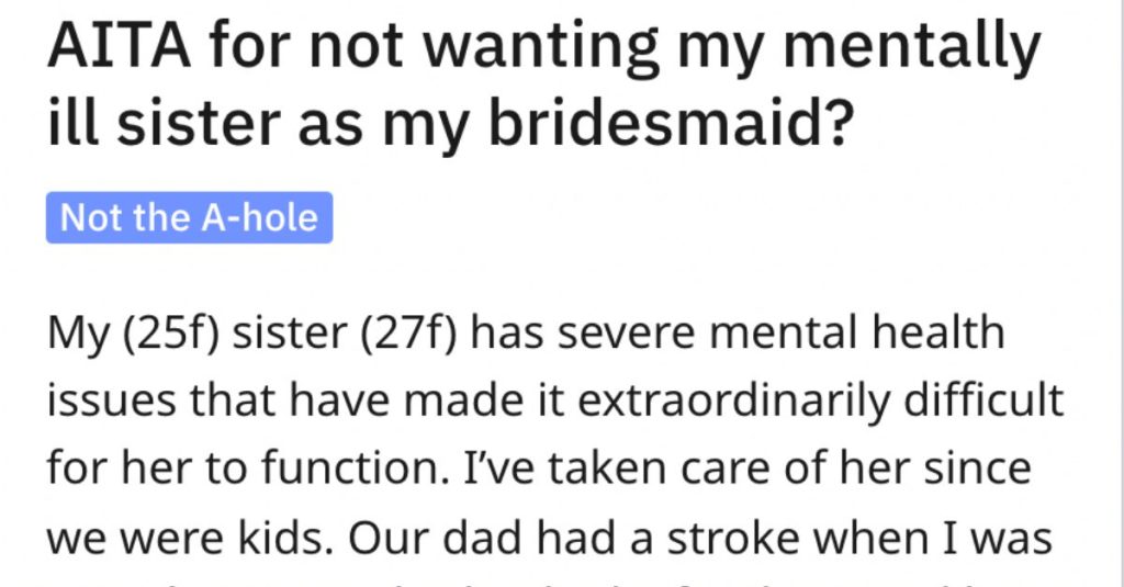 Now OP is getting married, and for reasons like her not actually liking her sister to wanting to be surrounded by love and support on her wedding day, plans to not invite her sister to be a bridesmaid.