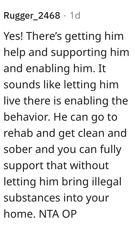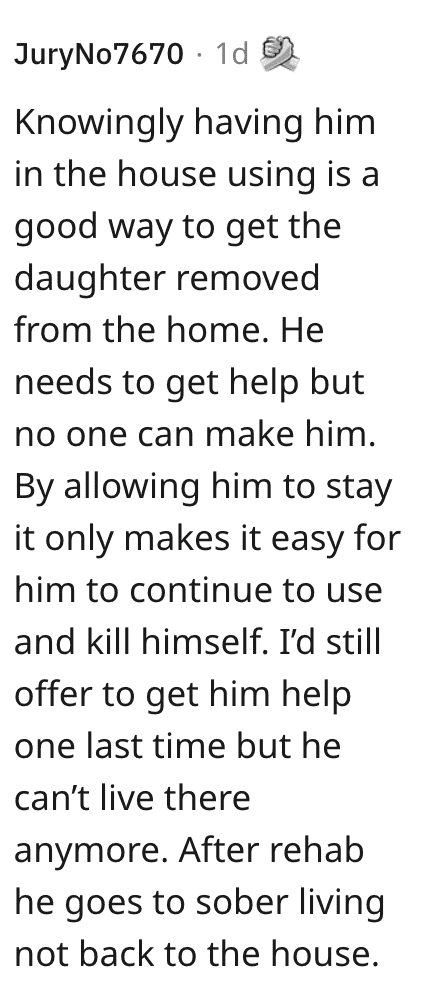 After a recent DUI, she made the threat that if he didn’t make a serious effort to get clean, he wouldn’t be able to live there anymore.