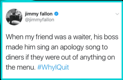 We’ve had a #HowIGotFired hashtag in the past (which was equal parts hilarious and horrifying), and now, thanks to Jimmy Fallon once again, the twitter universe is gracing us with reasons why people quit their job. These are just as funny, appealing, and appalling, and they’re full of exactly the kind of internet hilarity you need in your life.