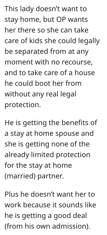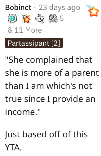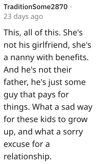 Another individual agreed and said it sounds like his GF is a nanny with benefits.