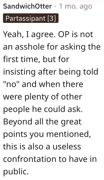 One person said this guy is an a**hole and he should have left it alone.