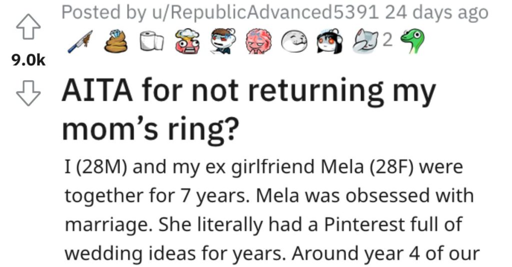 But is this guy acting like an a**hole when it comes to his mother’s ring?