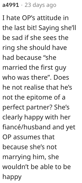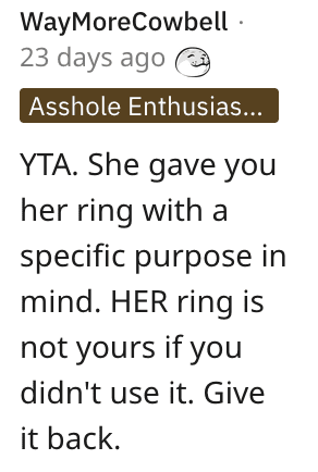 This reader said he’s the a**hole in this story and that he needs to give the ring back.