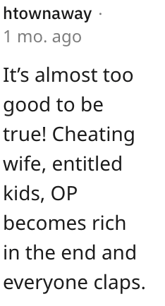 He paid off my house. He also made educational funds for my three kids. He figured the older ones were done school and hadn’t bothered to visit them in years so they didn’t need anything from him.