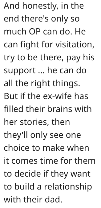 I would always come up short. Eventually the kids refused to spend time with me. It went to court and I basically had to accept that I couldn’t force them to see me and my parents.